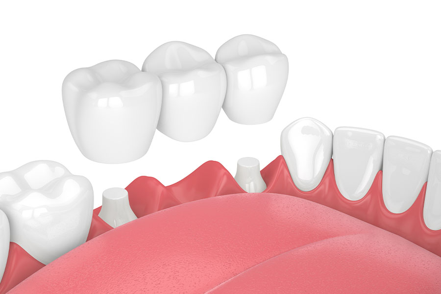 ブリッジとは、歯を失った部分を補うために、両隣の歯を支えにして人工の歯を固定する治療です。