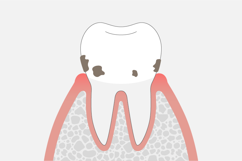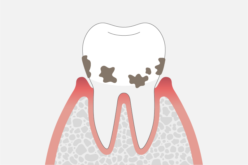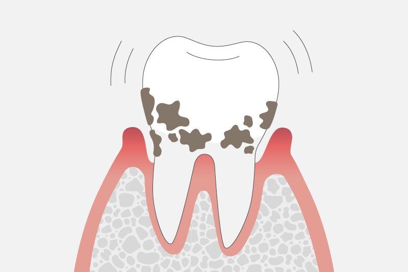 水がしみるようになったり、歯磨きをすると歯茎から血が出たり、歯茎が腫れたり治ったりの症状を繰り返します。また、歯がぐらぐらと動揺しはじめ、膿が出たり口臭が強くなる場合もあります。