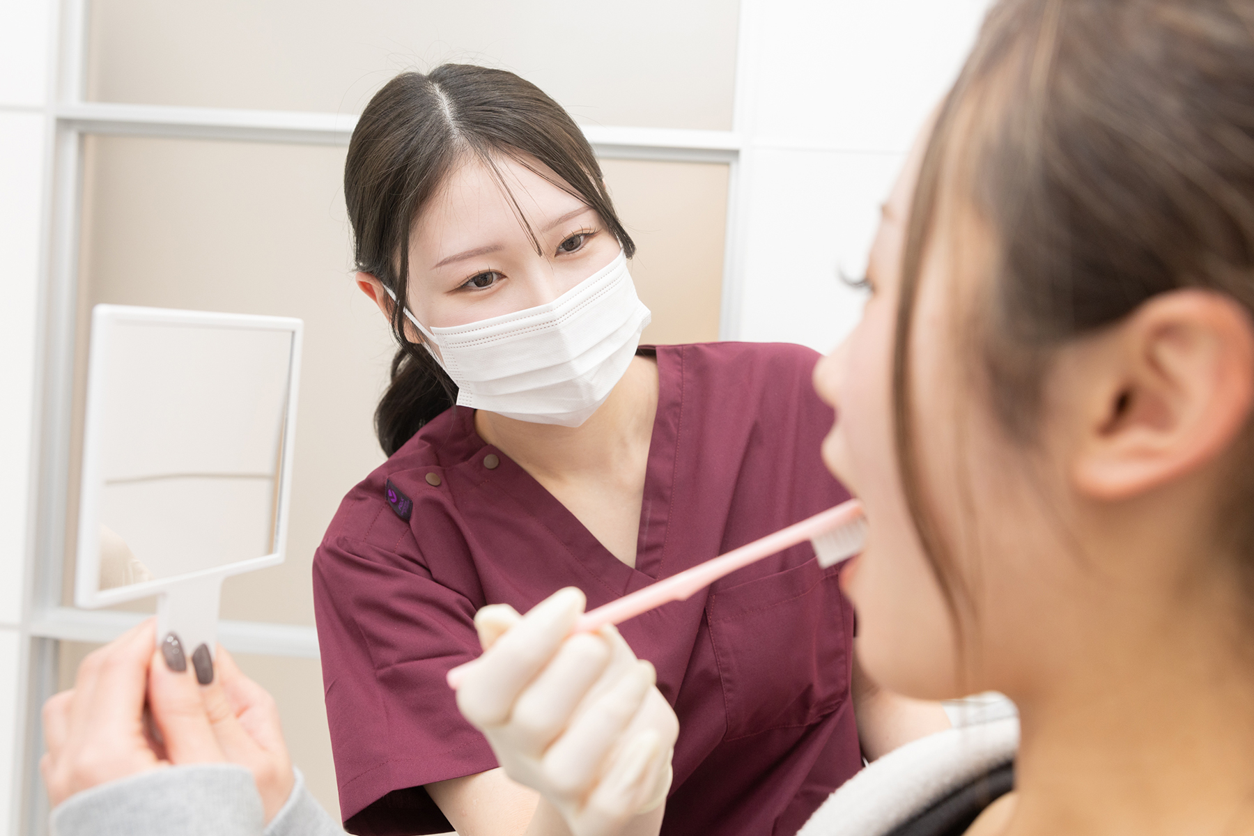 再発防止には、患者さま自身による歯垢(プラーク)のコントロールだけでなく、定期的に歯科医師や歯科衛生士による検診・治療を受け、歯をメインテナンスすることが重要です。