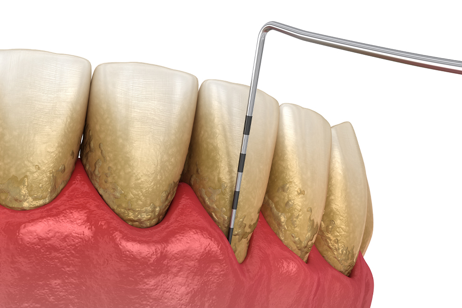 歯周病菌は、歯を支える歯周組織(歯肉や歯槽骨など)に作用し、少しずつ組織の破壊を進めていきますが、多くの場合自覚症状がありません。そのため、気づいたときには症状が進行し、歯を失ってしまう可能性があります。